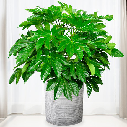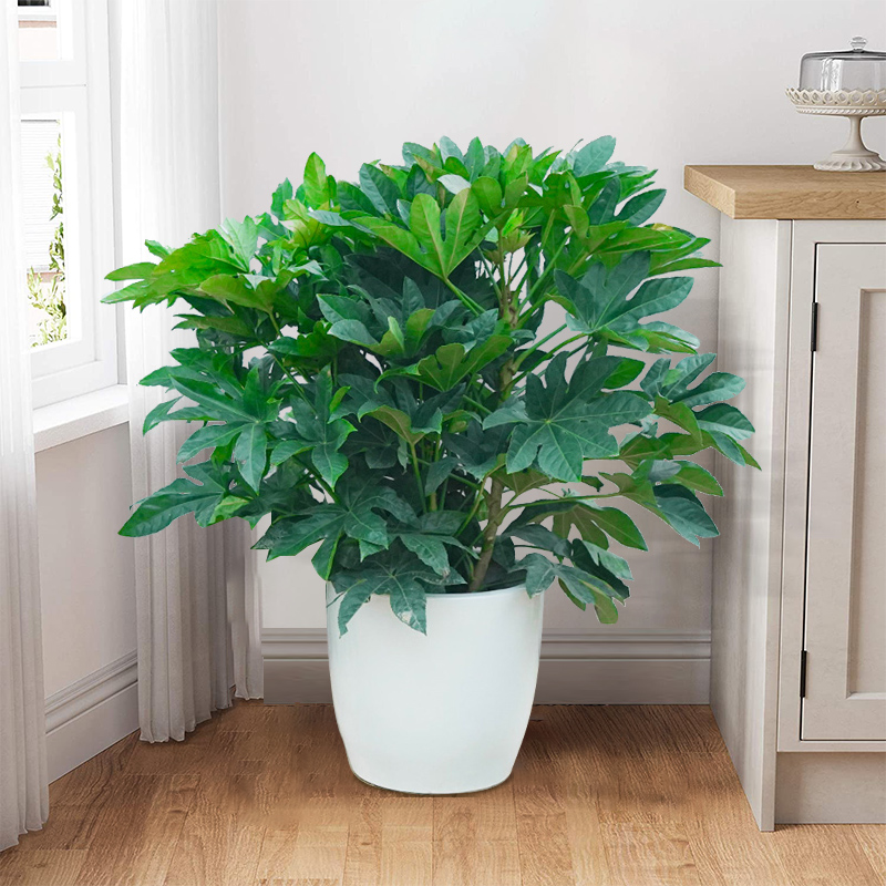八角金盘叶片宽大如掌,八片分展象征着八方来财。叶片厚实油亮,在光线下泛着沉稳的光泽,不仅极具观赏价值,更能有效吸收甲醛、净化空气,为办公室营造健康清新的工作环境。