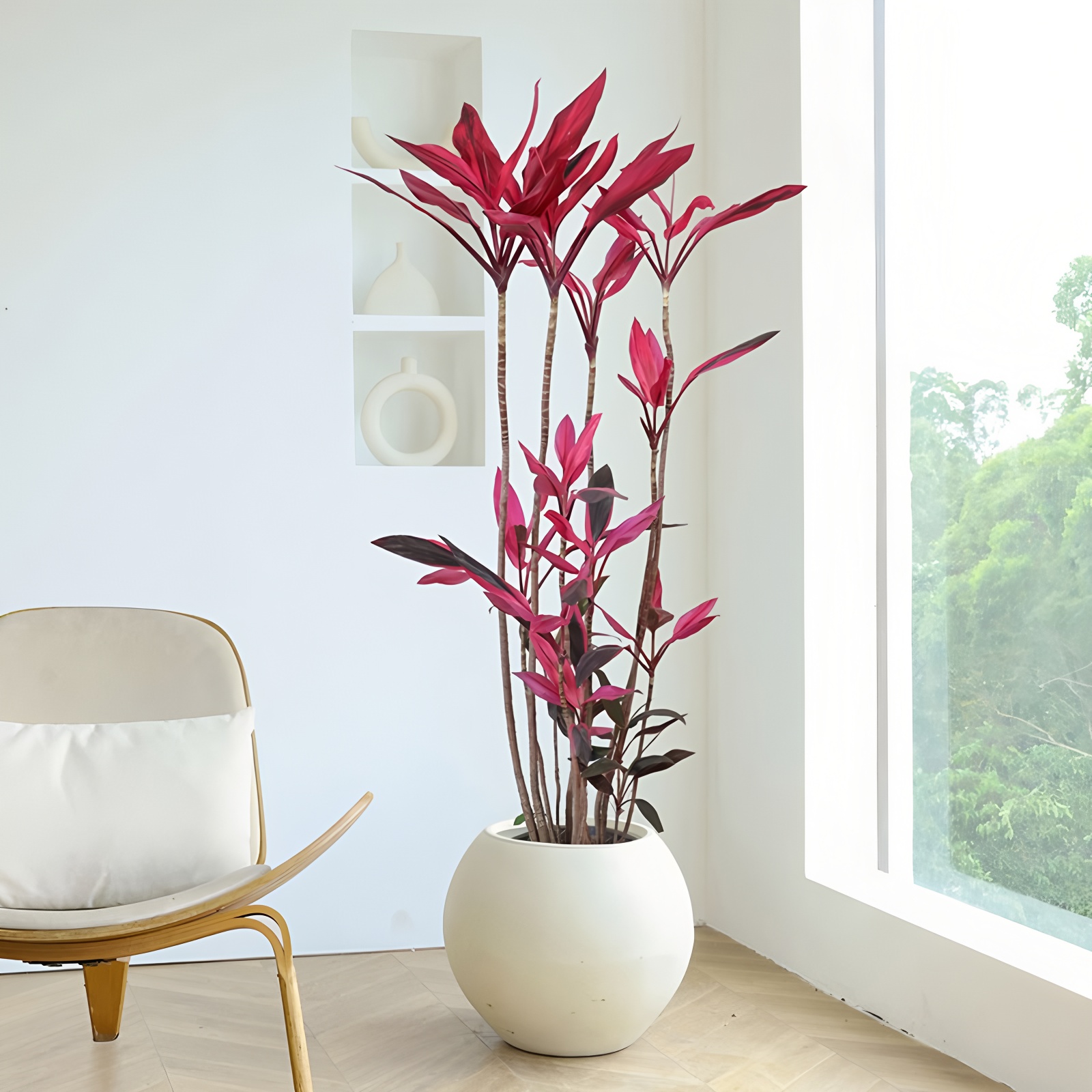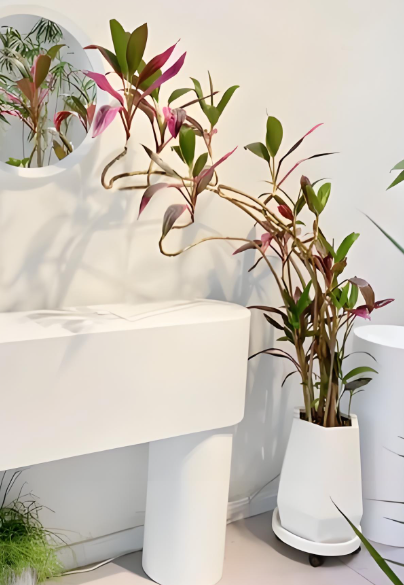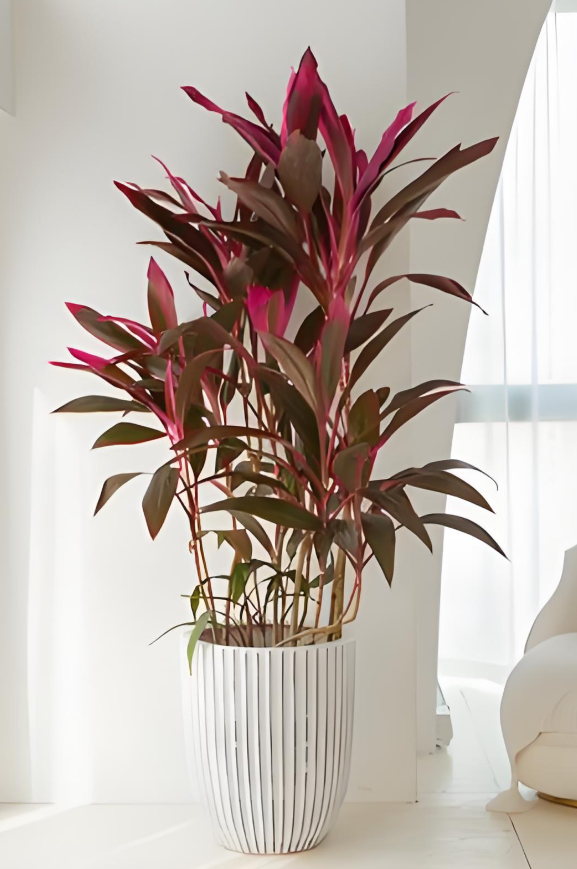 朱蕉叶片色彩艳丽,从深红到紫红的自然渐变,宛如立体的东方水墨画。它不仅造型时尚独特,更能有效净化空气、调节湿度,为办公室带来健康活力与艺术美感。