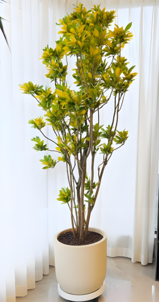 洒金榕叶片上洒落着不规则的金色斑纹,每片叶子都是独特的自然艺术品。阳光洒落时,金色斑纹熠熠生辉,为办公空间带来温暖明亮的视觉享受,同时有效净化空气,营造健康环境。