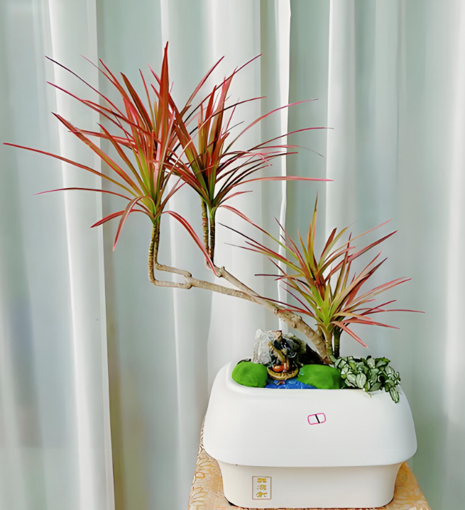 千年木叶片从深红到亮黄自然渐变,每片叶子都是自然的艺术创作。它不仅造型如艺术品般精致,更能有效净化空气,为办公室创造健康活力的呼吸环境。