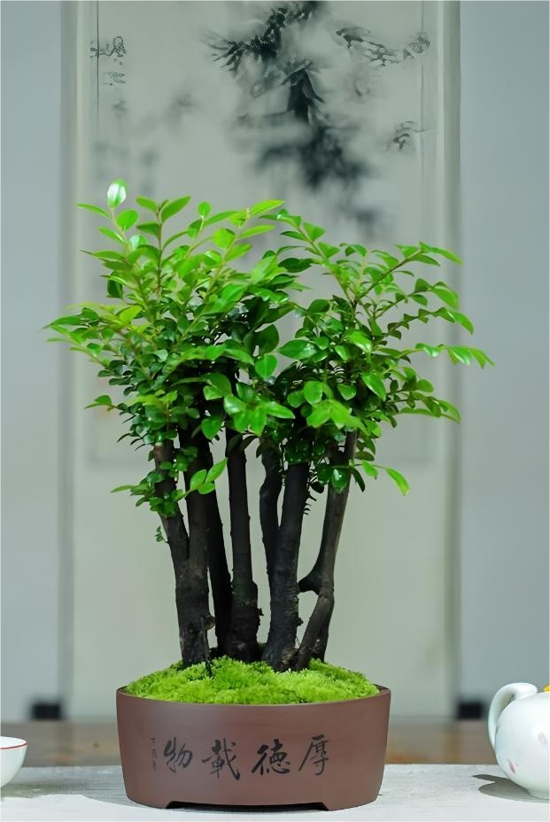 小叶紫檀木质致密,叶色深绿,整体造型沉稳大气。它不仅具有文化象征意义,更能有效净化空气,为办公室营造高雅尊贵的商务氛围。